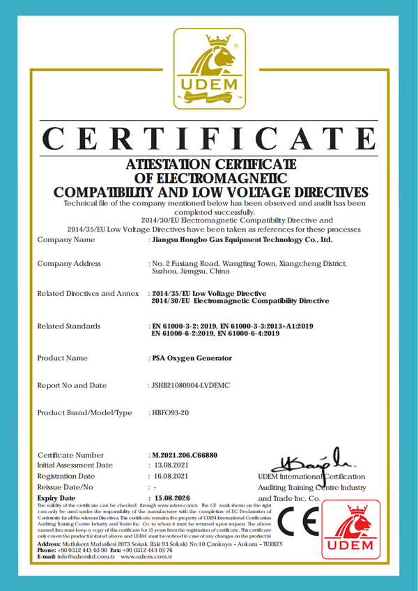 制氧機CE證書